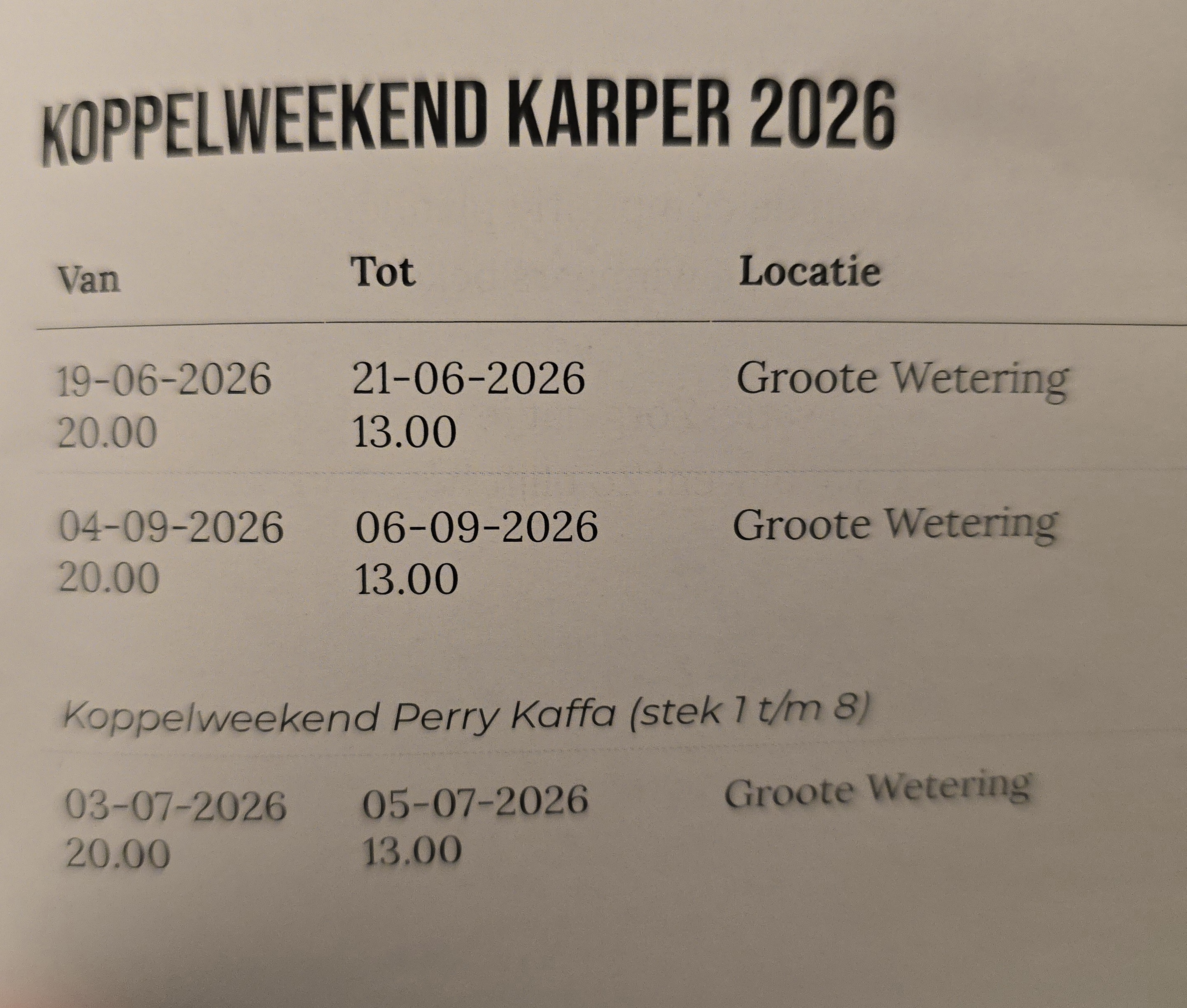 Weekend koppel wedstrijden Karper 2026